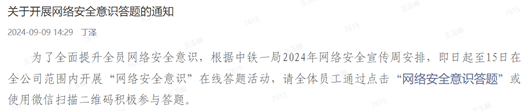 為增強(qiáng)中鐵一局全體員工網(wǎng)絡(luò)安全意識(shí),提高網(wǎng)絡(luò)安全防護(hù)水平,按照股份公司安排部署,中鐵一局于9月9日至9月15日期間開展主題為“網(wǎng)絡(luò)安全為人民,網(wǎng)絡(luò)安全靠人民”的網(wǎng)絡(luò)安全宣傳周活動(dòng)。