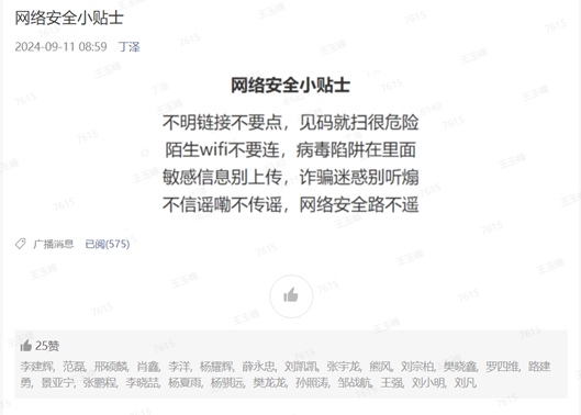 宣傳周期間活動(dòng)形式多樣,內(nèi)容豐富,主要包括網(wǎng)絡(luò)安全周主題宣傳氛圍營造、網(wǎng)絡(luò)安全科普視頻推廣、每日網(wǎng)絡(luò)安全小貼士推送以及網(wǎng)絡(luò)安全知識(shí)競答活動(dòng)。