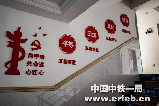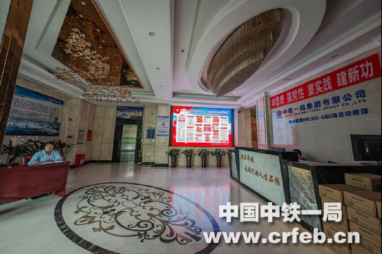 走進(jìn)梅龍鐵路項目部一樓大廳,一股濃厚的滿是“正能量”的“家”氣息撲鼻而來。正對門口的前臺臺身張貼著“追求卓越是我們的人生品格”的相當(dāng)于“家規(guī)家風(fēng)”“企業(yè)核心價值觀”。她提供著使項目部員工共同遵守并身體力行的生活、成長環(huán)境。左側(cè)電梯門上方“我的企業(yè)我奮斗”口號,振奮著員工要為代表一公司的項目部這個家里盡心盡力的斗志。前臺后方的“主題教育”標(biāo)語與左側(cè)墻面上電子屏上的《一圖讀懂二十大報告精神》,昭示了項目部員工有一個濃厚的使人健康成長的學(xué)習(xí)氛圍。