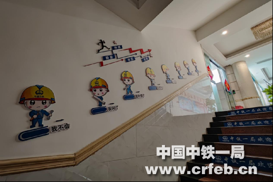 在通往二樓的左拐墻面上,張貼著“牢固樹立‘強(qiáng)化執(zhí)行就是創(chuàng)效’的管理理念”,警示著員工要養(yǎng)成、執(zhí)行猶如家規(guī)的工作指示、通知和要求。行走在樓梯臺階時,左側(cè)墻面張貼著“凡是工作必帶目標(biāo)”“凡是目標(biāo)必帶計劃”“凡是計劃必帶方案”的延伸執(zhí)行力內(nèi)容的標(biāo)語;樓層拐角墻面,是新時代中國中鐵主人翁精神標(biāo)語,也是作為項目部員工“堅定理想信念,以更加飽滿的精神狀態(tài)、更加昂揚(yáng)的奮斗姿態(tài),展示新時代‘開路先鋒’形象”的規(guī)定;隨著臺階上走左側(cè)墻張貼的“我問了”“我聽懂了”“我理解了”“我學(xué)會了”“我記住了”標(biāo)語,不正像我們?nèi)松徊讲降某砷L完美過程,也提醒著我們要刻苦勤奮,要努力拼博,要奮發(fā)向上,樹立遠(yuǎn)大理想,才能有所收獲,進(jìn)而取得成功。
