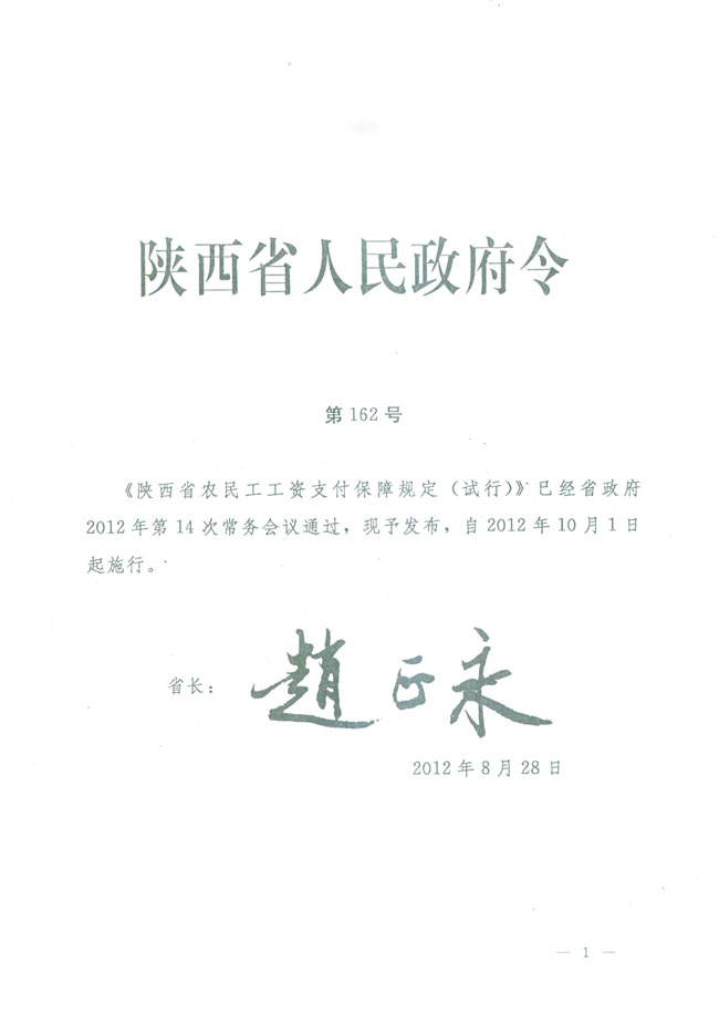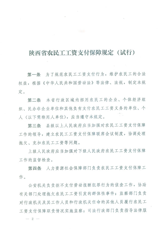 陜西省農(nóng)民工工資支付保障規(guī)定(試行)