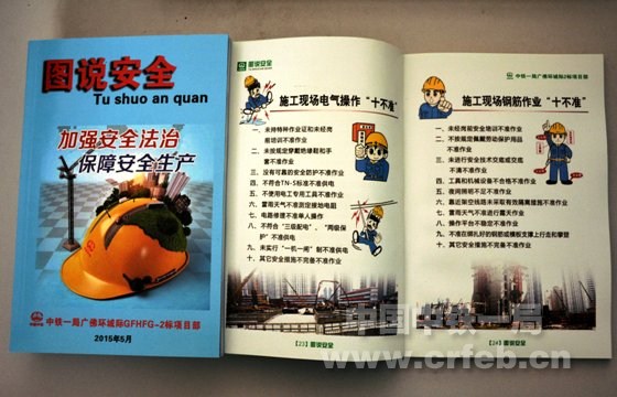 為認(rèn)真貫徹落實股份公司開展的全員安全教育培訓(xùn)活動相關(guān)要求,扎實推進全員安全教育培訓(xùn)工作向縱深發(fā)展,中鐵一局廣佛環(huán)項目部結(jié)合施工現(xiàn)場工作實際情況,編輯了《圖說安全》一書,作為全員安全教育培訓(xùn)的普及讀本,印刷1000冊,做到人手一本。