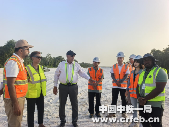 近日,圭亞那住房與水務(wù)部部長(zhǎng)Collin David Croal、副部長(zhǎng)Vanessa Benn一行到中鐵一局承建的克雷格至迦南地四車(chē)道高速公路項(xiàng)目6標(biāo)段施工現(xiàn)場(chǎng)檢查指導(dǎo),實(shí)地了解項(xiàng)目推進(jìn)情況,并對(duì)施工組織、質(zhì)量安全管理和生態(tài)環(huán)保措施落實(shí)等工作進(jìn)行檢查。