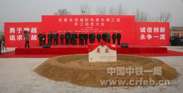 12月29日,京唐京濱城際鐵路先期工程開工動員大會在中鐵一局天津公司天津寶坻南站維修工區(qū)項目工地召開,大會的主題是“建設軌道上的京津冀,加快京津冀協(xié)同發(fā)展”。開工動員會由天津市人民政府、京津冀城際鐵路投資有限公司主辦,寶坻區(qū)人民政府、中鐵一局集團有限公司協(xié)辦。
