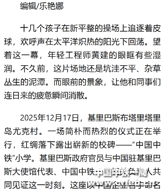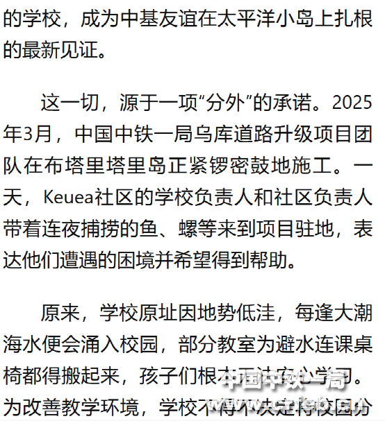 新華社客戶端:太平洋小島嶼上,有一所“中國中鐵”小學(xué)