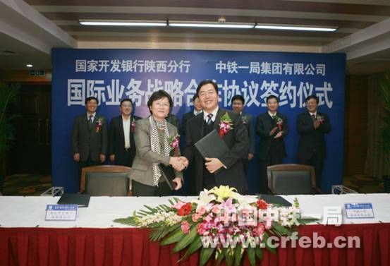 中鐵一局與國家開發(fā)銀行陜西分行12月26日在西安簽署國際業(yè)務戰(zhàn)略合作協(xié)議。這意味著企業(yè)將得到1.2億美元的保理融資和今后5年總計50億美元的融資支持,中鐵一局國際化戰(zhàn)略和海外事業(yè)迎來了一個重要的發(fā)展機遇期。