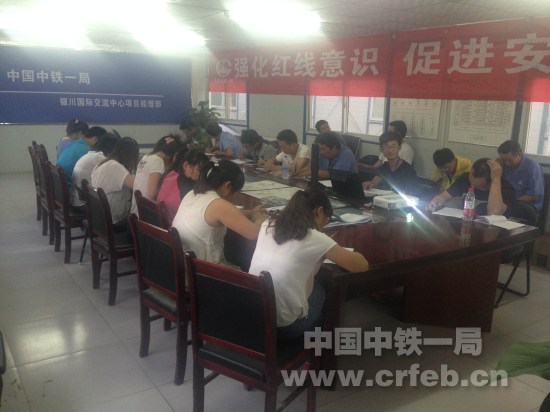 銀川綠地香樹(shù)花城項(xiàng)目部觀看安全警示教育片(樊亞榮攝)
