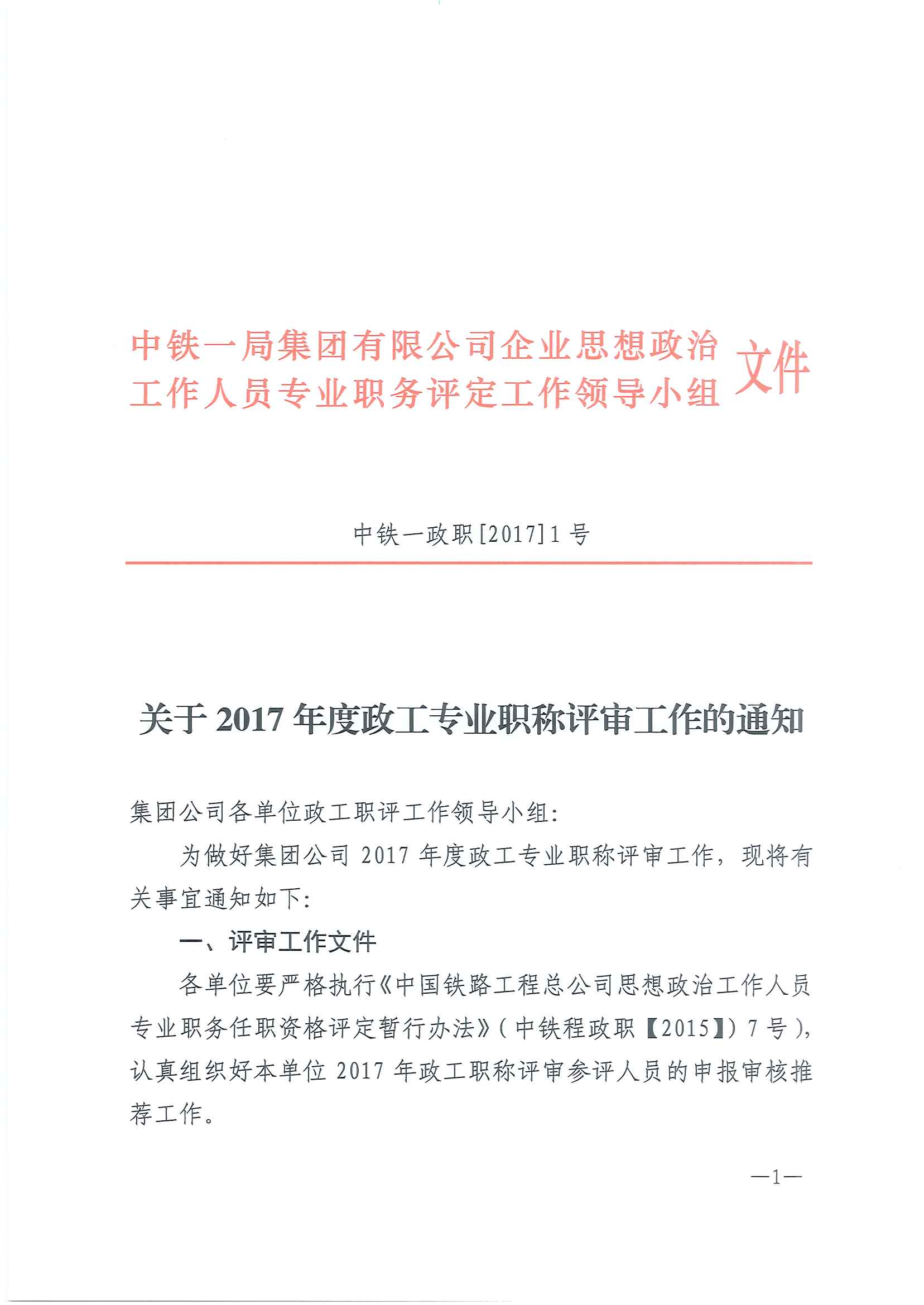 關(guān)于2017年度政工專業(yè)職稱評(píng)審工作的通知
