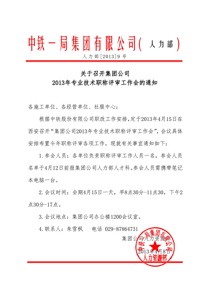 關(guān)于召開集團公司2013年專業(yè)技術(shù)職稱評審工作會的通知