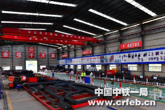 作為臨建標準化建設(shè)的重要標志,桂鐘5、8標段的鋼筋加工廠,廠房高度12米,作業(yè)場地平整、硬化。加工場內(nèi)醒目位置都設(shè)置工程公示牌、施工平面布置圖、安全生產(chǎn)牌、消防保衛(wèi)牌、管理人員名單及監(jiān)督電話牌、文明施工牌等明示標志。加工廠內(nèi)按照功能設(shè)立了原材料堆放區(qū)、鋼筋下料區(qū)、加工制作區(qū)、鋼筋籠預(yù)拼接區(qū)、半成品堆放區(qū);還設(shè)置安裝了龍門數(shù)控切割機、全自動數(shù)控液壓鋼筋調(diào)直切斷機、鋼筋快速鋸床、數(shù)控鋼筋彎曲機、數(shù)控鋼筋調(diào)直機、數(shù)控鋼筋彎箍機、數(shù)字化工業(yè)焊接機器人、數(shù)控滾籠焊機、數(shù)控立式彎曲中心、全自動數(shù)控彎箍機、鋸切套絲打磨生產(chǎn)線等等機械化、數(shù)字化設(shè)備并懸掛著機械操作安全規(guī)定公示牌和設(shè)備標示牌。這些工裝工藝標準化為項目部標準化建設(shè)賦能。
