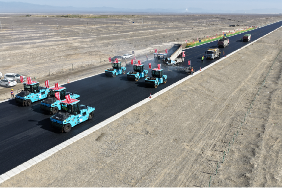 2025年9月,項目智能無人攤壓機群技術應用的創(chuàng)新實踐亮相“連霍高速新疆星哈吐段干旱荒漠區(qū)智慧低碳改擴建科技示范工程”技術交流暨觀摩會,并得到交通運輸部相關司局、哈密市人民政府、全國29個省(區(qū)、市)交通運輸主管部門、科研院所及重點交通建設企業(yè)代表和專家的一致肯定。