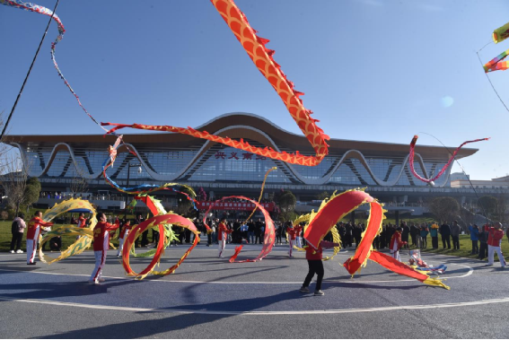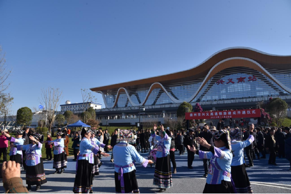 載歌載舞的黔西南州人民慶祝盤興高鐵通車