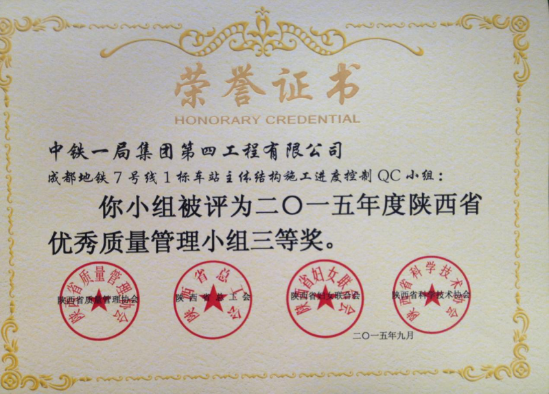 成都地鐵7號線1標(biāo)主體結(jié)構(gòu)施工進(jìn)度控制QC被評2015年度陜西省QC三...
