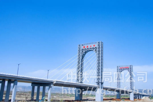 寶雞陸港大橋是寶雞市渭河上高度最高、寬度最寬、跨度最大的城市橋梁,全長(zhǎng)1272米,橋梁上跨南北河堤路、渭河及連霍高速,為雙向八車道,設(shè)計(jì)時(shí)速每小時(shí)60公里。主橋?yàn)殡p塔雙索面鋼箱梁斜拉橋,跨徑布置為(102+208+102)米,大橋橫梁整體提升重量大、同步控制要求高、定位精調(diào)難度大、空中懸停時(shí)間長(zhǎng)、施工組織和技術(shù)要求高。門(mén)式鋼桁架主塔提升施工工藝應(yīng)用于格構(gòu)式鋼塔斜拉橋塔頂拱形橫梁的施工屬國(guó)內(nèi)首次,項(xiàng)目榮獲2020年度“中國(guó)中鐵杯”優(yōu)質(zhì)工程。