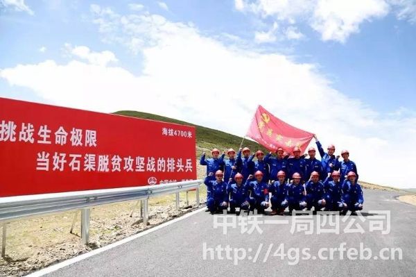 中鐵一局四公司黨員突擊隊及管理骨干在石渠瓦須2標海拔4700米處莊嚴宣誓:優(yōu)質高效建好工程
