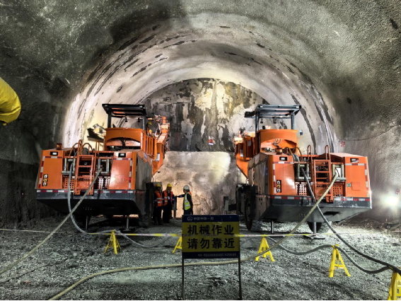 分部堅持“機械化換人、自動化減人、智能化無人”的建設(shè)理念,錨定“消除安全隱患、減輕勞動強度、提高施工效率”目標,著力打造隧道全工序智能建造體系,推動“一局隧道”品牌不斷彰顯硬核技術(shù)實力。在明通隧道試點應用多功能鉆機、鑿巖臺車、36米液壓式仰拱棧橋、智能化襯砌臺車等10余類智能裝備,實現(xiàn)鉆孔、支護、襯砌等關(guān)鍵工序全流程機械化作業(yè),有效降低施工風險,顯著提升生產(chǎn)效率。
