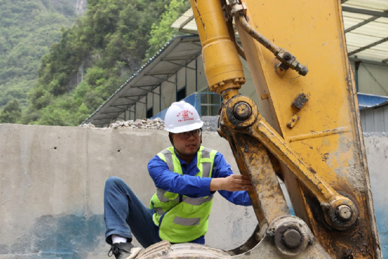 陳旭陽對挖掘機部件的細致檢查