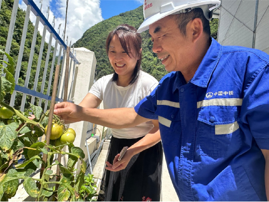 “采摘到自己親手種植的新鮮無公害的蔬菜,太有成就感了,到時(shí)候都來嘗嘗,絕對原生態(tài)”。連日雨天今放晴,朱家山隧道出口駐地一角的菜園子里蔬菜瓜果長勢喜人,黃瓜、番茄、辣椒、青菜,呈現(xiàn)出一片生機(jī)勃勃的景象,王芝明和他的妻子開心地展示著這片小菜園的收獲。