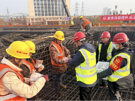 為一線工人發(fā)放“臘八”三件套