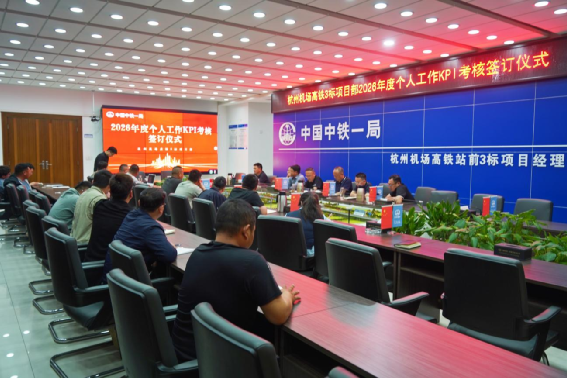 杭州機(jī)場(chǎng)高鐵3標(biāo)項(xiàng)目部召開(kāi)2026年度個(gè)人工作KPI考核簽訂儀式