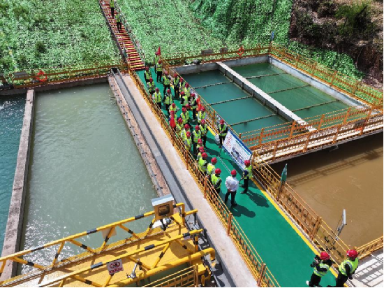 在智能化尾水處理系統(tǒng)觀摩區(qū),觀摩團認真了解了智能化尾水處理設(shè)備的技術(shù)指標和八大系統(tǒng)模塊。該系統(tǒng)是云南省施工現(xiàn)場應(yīng)用的設(shè)備最先進、凈化效果最好、處理效率最高、建成規(guī)模最大的尾水處理系統(tǒng)。觀摩人員現(xiàn)場仔細端詳對比凈化處理前后的水體,汩汩濁流變得清澈見底,紛紛表示稱贊。