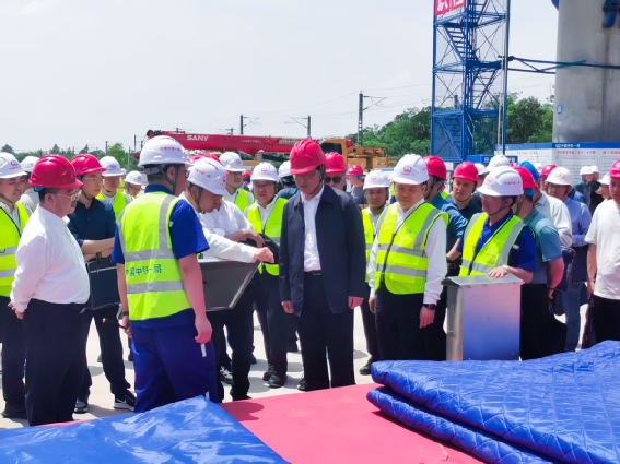 湖北麻城訊:4月25日,由4家鐵路局、7家建設(shè)公司及沿線施工、監(jiān)理單位組成的百人觀摩團(tuán)到合武高鐵湖北段HWZQ-2標(biāo)項(xiàng)目開展“安全穿透式管理”觀摩。中鐵一局黨委書記、董事長郗宜君,黨委副書記、工會(huì)主席劉為帛,副總經(jīng)理潘小虎,安全質(zhì)量總監(jiān)侯小軍,五公司黨委書記、執(zhí)行董事袁建飛,五公司常務(wù)副經(jīng)理張超出席活動(dòng)。