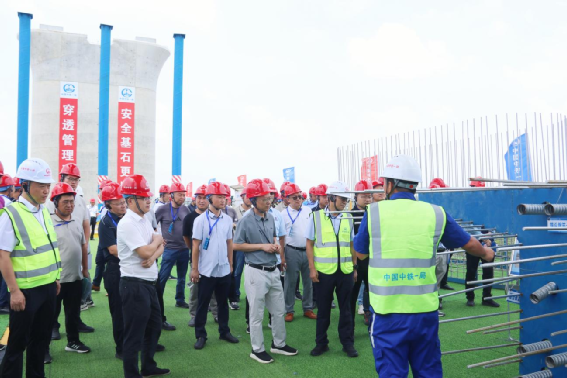 杭州鐵路樞紐工程建設指揮部所轄杭州機場高鐵、衢麗鐵路、金建鐵路、寧波北侖復線、溫玉鐵路、甬舟鐵路等10個工程項目設計、監(jiān)理、參建單位代表共計120余人,在杭州機場高鐵3標江東特大橋43#墩智慧造橋機施工現(xiàn)場交流。杭州鐵路樞紐工程建設指揮部副指揮長徐俏東,中鐵一局華東地區(qū)指揮部指揮長楊俊、安全生產稽查隊(管控組)第二隊隊長王宇鴻,五公司總經理武濤、副總經理兼杭州機場高鐵3標項目負責人劉利鋒、副總經理廖俊松參加現(xiàn)場交流會。