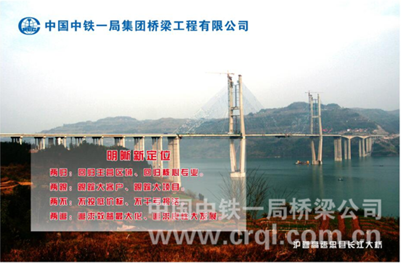 “新定位”是對(duì)公司扭虧解困和提質(zhì)增效工作的目標(biāo)定位,主要用于指導(dǎo)營銷實(shí)踐。具體內(nèi)容為“兩歸、兩跟、兩不、兩追”。“兩歸”即回歸主營區(qū)域、回歸核心專業(yè),指的是回歸重慶、湖北、江西主營區(qū)域和全國橋梁施工區(qū)域,回歸有著六十多年施工經(jīng)驗(yàn)和施工特長的橋梁施工核心專業(yè);“兩跟”即跟蹤大客戶、跟蹤大項(xiàng)目,指的是要適應(yīng)市場(chǎng)經(jīng)濟(jì)和企業(yè)自身需要,與大客戶、大項(xiàng)目的單位建立良好信譽(yù)關(guān)系和長期合作關(guān)系,實(shí)現(xiàn)互利共贏;“兩不”即不投低價(jià)標(biāo)、不干虧損活,指的是要從源頭抓起,樹立正確的政績觀、價(jià)值觀,投合理標(biāo),干盈利工程;“兩追”即追求效益最大化、追求良性大發(fā)展,指的是要以盈利目標(biāo),確保效益最大化,確保國有資產(chǎn)增值保值,確保企業(yè)走向健康發(fā)展、職工安居樂業(yè)的良性發(fā)展軌道。