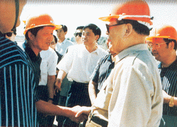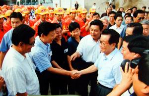 - 江澤民總書記視察中鐵一局修建南疆鐵路工程時,與員工親切握手交談