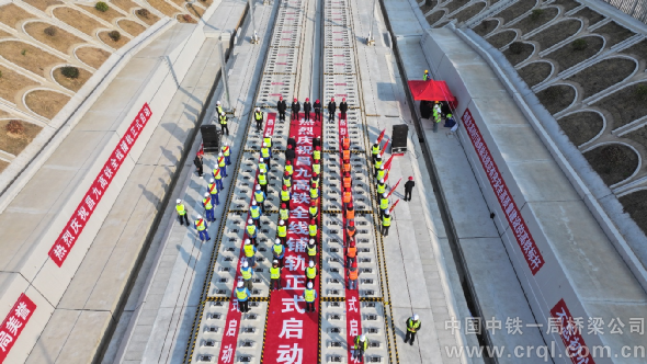 12月19日,在位于江西九江的中鐵一局昌九高鐵施工現(xiàn)場(chǎng),隨著鋪軌車將第一對(duì)500米長(zhǎng)鋼軌平穩(wěn)鋪設(shè)到位,昌九高鐵正式進(jìn)入全線鋪軌階段。