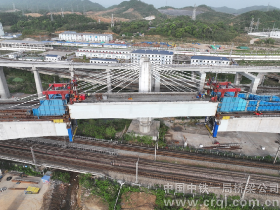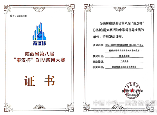 施工中19次跨越鐵路、高速與水庫,每一次跨越都是對技術(shù)與安全管控的嚴(yán)峻考驗(yàn)。跨杭瑞高速特大橋施工中,創(chuàng)新采用國內(nèi)首創(chuàng)的“自驅(qū)動輪軌式小車大縱坡馱運(yùn)縱移+豎向千斤頂?shù)鯍煜到y(tǒng)整體下放”工法,以16臺小車組成“運(yùn)輸矩陣”完成過孔作業(yè),借BIM技術(shù)實(shí)現(xiàn)鋼箱梁誤差毫米級控制,工效較傳統(tǒng)工法提升10倍,相關(guān)BIM應(yīng)用成果榮獲“新城建杯”一等獎、“秦漢杯”二類成果獎,為同類工程提供寶貴經(jīng)驗(yàn)。