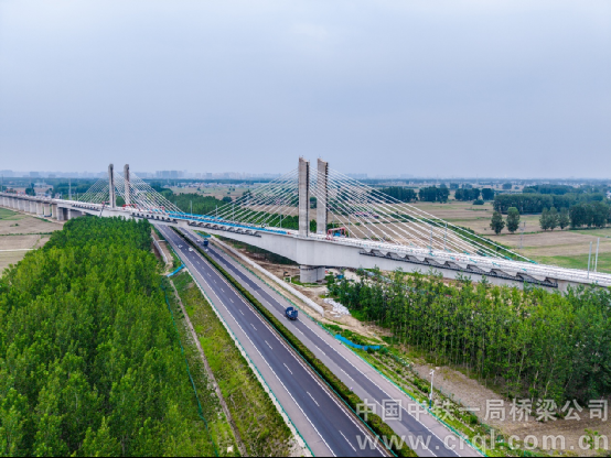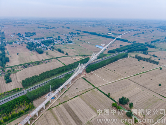 跨京臺高速矮塔斜拉橋全貌