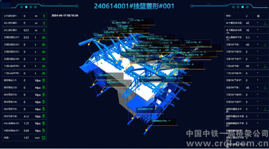 針對跨高速作業(yè),選用先進的菱形掛籃,定制新型標(biāo)高調(diào)節(jié)裝置,采用全封閉防護,有效防止墜物風(fēng)險,并提升工效;引入“智能監(jiān)測系統(tǒng)”對掛籃進行實時監(jiān)控,數(shù)據(jù)分析預(yù)警潛在風(fēng)險,在關(guān)鍵部位安裝遠(yuǎn)程監(jiān)控系統(tǒng)并接入智慧中心,主要管理人員手機安裝監(jiān)控APP,“移動式”安全巡查,實現(xiàn)安全管理可視化;每日堅持班前安全講話和班后總結(jié),項目負(fù)責(zé)人閆鋒每日帶隊巡查,立查立改,堅決消除隱患……通過這些嚴(yán)密的措施,為項目在高風(fēng)險施工階段筑起了一道堅實的安全防線,穩(wěn)住了建設(shè)大局。