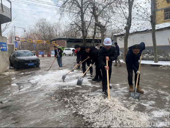 行動中,黨員先鋒隊與青年突擊隊率先投入清理工作。大家手持鐵鍬、掃帚,重點對主干道、駐地出入口及關(guān)鍵施工路段進行清掃。青年安質(zhì)崗成員同步開展安全巡查,及時排除隱患。經(jīng)過數(shù)小時連續(xù)奮戰(zhàn),項目辦公區(qū)至施工便橋區(qū)域的積雪積冰被徹底清除,保障了出行安全與施工有序推進。