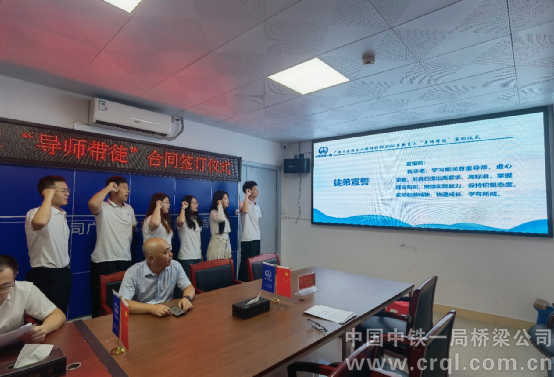 8月13日,在“導(dǎo)師帶徒”合同簽訂儀式上,項(xiàng)目部為6名新員工各自安排了一位專業(yè)技術(shù)扎實(shí)、工作經(jīng)驗(yàn)豐富的骨干導(dǎo)師,結(jié)成“一對(duì)一”的師徒關(guān)系,加強(qiáng)對(duì)新員工的業(yè)務(wù)技能培養(yǎng),更好地發(fā)揮“傳、幫、帶”作用。簽約儀式上,新員工及導(dǎo)師共同學(xué)習(xí)了《見(jiàn)習(xí)生管理辦法》,分別進(jìn)行集體宣誓。
