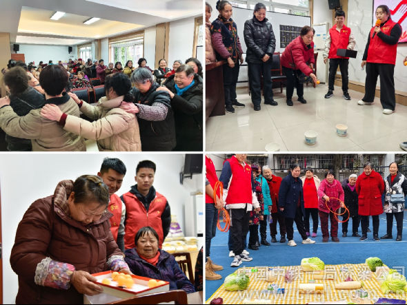 活動當(dāng)天,志愿者們來到位于重慶市渝北區(qū)的人和街道汪家橋社區(qū),在與社區(qū)工作人員詳細(xì)了解老人們的日常需求與生活狀況后,精心策劃了一系列適合老年人興趣的互動活動。在“健康拍手操”環(huán)節(jié),青年員工與老人們手拉手圍成圓圈,在歡快的音樂中舒展筋骨;在“夾瓶蓋挑戰(zhàn)賽”中,老人們專注地用筷子夾起瓶蓋,志愿者在一旁加油鼓勁,場面溫馨熱烈。此外,“筷子傳杯”“蔬菜水果套圈”等游戲更是點燃了老人們的熱情,社區(qū)廣場上洋溢著歡聲笑語。