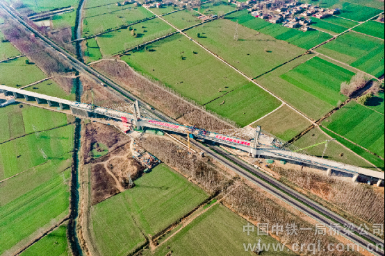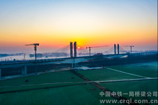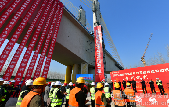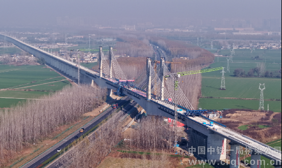 淮宿蚌城際鐵路控制性工程跨京臺高速矮塔斜拉橋合龍
