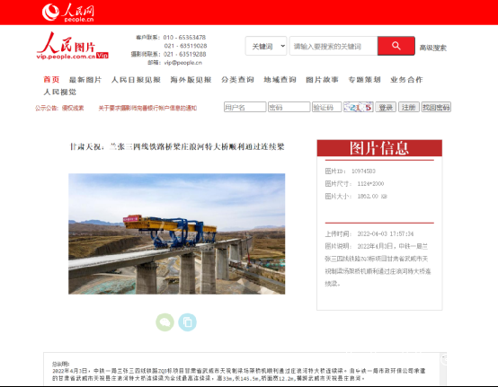 4月3日,人民網(wǎng)報(bào)道:甘肅天祝:蘭張三四線鐵路橋梁莊浪河特大橋順利通過連續(xù)梁