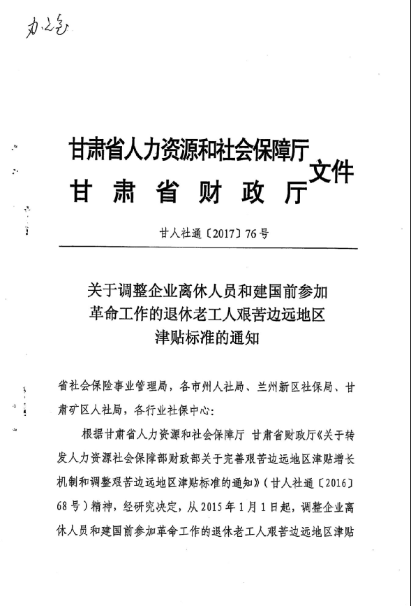 關于調(diào)整企業(yè)離休人員和建國前參加革命工作的退休老工人艱苦邊遠地區(qū)津貼標準的通知