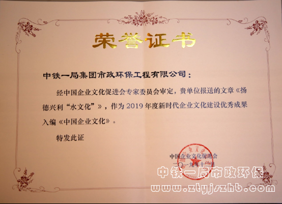 公司“水文化”建設(shè)獲中國企業(yè)文化促進會2019年新時代企業(yè)文化建設(shè)優(yōu)秀成果稱號