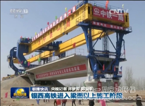 中央電視臺播出公司承建的銀西鐵路架設(shè)第一片箱梁