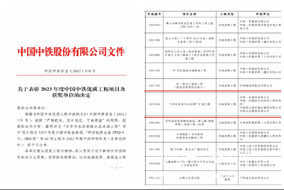 項目部還先后榮獲甘肅省工人先鋒號、甘肅省青年文明號、甘肅省建設(shè)工程文明工地、甘肅省建筑業(yè)綠色施工示范工程、甘肅省建筑業(yè)BIM+智慧工地示范工程、中鐵一局優(yōu)質(zhì)工程等多項榮譽。