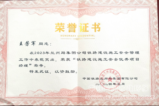 榮獲“2023年度鐵路建設(shè)施工安全優(yōu)秀項目經(jīng)理部”榮譽稱號