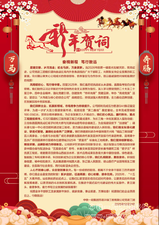 時間:2025年12月31日????作者:黨群綜合部????來源:中鐵一局集團市政環(huán)保工程有限公司黨政工團