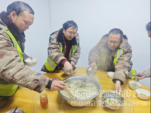 項(xiàng)目部準(zhǔn)備熱羊肉湯為員工驅(qū)寒保暖