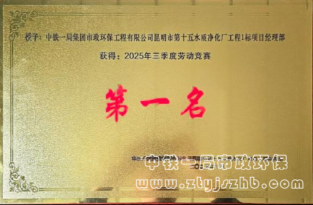 兩連冠!昆明市第十五水質(zhì)凈化廠再獲中鐵開投2025年季度勞動競賽第一名