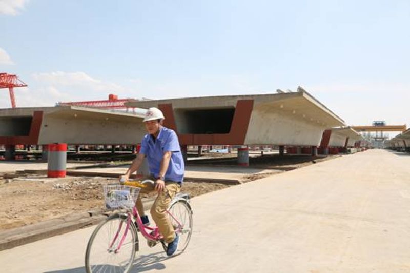 梁場面積大,現(xiàn)場檢查一圈就得近一個小時。手機計步器顯示,大家每天的步數(shù)都在3萬步以上。步行已經(jīng)無法滿足施工的節(jié)奏,為了提高工作效率,項目部還專門為技術(shù)人員配備了電動車和自行車。