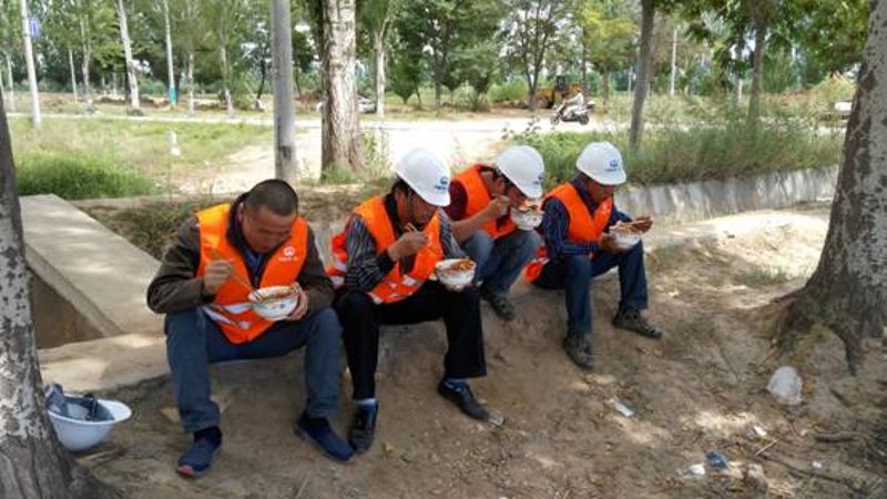梁場場地遠離村莊,沒電沒水沒住處。項目便為500余名參建人員搭建了10個簡易帳篷臨時落腳。現(xiàn)場起灶,給職工和外協(xié)工一起供飯。當時正是風(fēng)沙季節(jié),兄弟們坐在地上就著泥沙吃著大鍋飯,大家一起吃,一起住,一起勞動。
