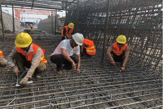 馬忠生在現(xiàn)場指導(dǎo)勞務(wù)工們綁扎鋼筋