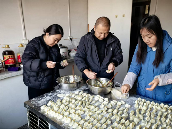 活動現(xiàn)場,職工們熱情高漲、分工協(xié)作,和面、搟皮、包餡等工序有條不紊地進(jìn)行著。大家紛紛亮出拿手絕活,有的手法嫻熟,飛快地捏出一個個飽滿的餃子;有的初次嘗試,在同事的指導(dǎo)下慢慢摸索,現(xiàn)場不時傳來歡聲笑語。一張張薄薄的餃子皮,在大家的巧手下變成了形態(tài)各異的餃子,整齊地擺滿桌面,濃濃的餃香與溫馨的氛圍交織在一起。